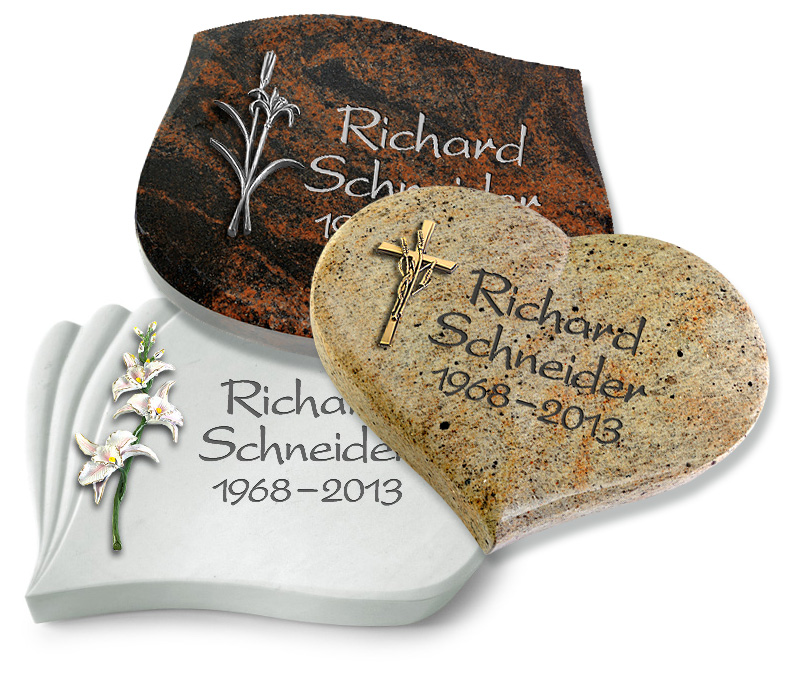 Sie suchen nach dem besonderen, schönen Grabbuch für einen einen geliebten Menschen: MEMORUM-Grabmale ist der größte Online – Anbieter von günstigen Sandstrahl gravierten modernen Urnengrabsteinen und Grabeinfassungen bzw. Grabsteine für Ihr Rasengrab aus Naturstein. Wir arbeiten mit Steinmetzen in ganz Deutschland zusammen – sogar viele Bestatter gehören zu unserem Kundenstamm, Bestatter die dann unsere Grabbücher beim Trauerfall Ihren Kunden – Beisetzung gemeinsam mit einer Grabeinfassung von uns als Komplettpaket anbieten können. MEMORUM ist ein Steinmetz Meisterbetrieb, mit 3 Bildhauermeistern, unser Qualitätsanspruch setzt Maßstäbe, besuchen Sie unser Vielfältiges Angebot an Liegesteine für Ihr Rasengrab. Auch für Ihr großes Familiengrab wenn später eine Urne zusätzlich beigesetzt wurde, und Sie nicht möchten das der Grabstein für die zusätzliche Schrift wieder abgebaut werden muss, bietet sich ein Liegestein von MEMORUM perfekt an. Der Grabstein wird einfach nur in die Erde etwas schräg gelegt, und stellt dann eine würdevolle Grabstätte für Ihren geliebten Menschen dar. Bei uns zählt Qualität. Der günstige Preis resultiert aus der standardisierten Beschriftungstechnik von ausgewählten Schriften, umgesetzt in dauerhafter Sandstrahltechnik oder hochwertigen Metallguss Inschriften. Mit unseren Produkten entscheiden Sie sich für stilsichere und dauerhafte Grabgestaltungen vom Meisterbetrieb, die rationell gefertigt und deshalb so überraschend günstig sind.